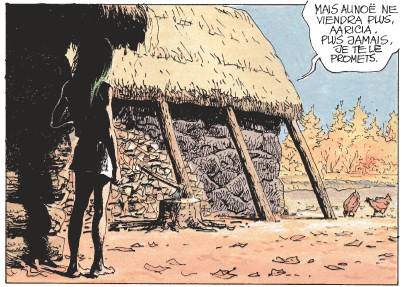 Après avoir essayé vainement de vivre au milieu des hommes, Thorgal a donc fait le choix radical de vivre en n’en voyant plus aucun. Pour vivre heureux, vivons cachés. L’expression est facile mais ne semble pas vraiment convaincre Aaricia. L’île est belle, bien maîtrisée par le couple, mais elle est aussi une cage, fermée pour ses habitants mais restant ouverte sur un monde qui va doucement apprendre à la connaître. Pas vraiment le paradis, cet endroit qui sera envahi tour à tour par Alinoë, Kriss de Valnor, Jaax le veilleur et Sardaz l’écorché.