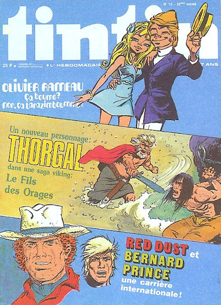 Prépublication des premières planches de Thorgal sous le titre « Le fils des orages », dans l'hebdomadaire Tintin appartenant aux Éditions du Lombard