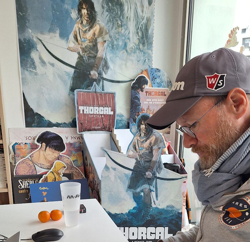 Le dessinateur Fred Vignaux est passé ces jours-ci dans les locaux du Lombard pour y dédicacer plusieurs albums, notamment ceux qui seront offerts à certains membres assidus du site Thorgal.com !