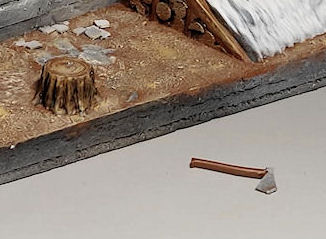 Voyez ce que ça donne ci-dessous !Allez il est temps, comme promis voici la toute dernière étape de… LE FOYER DES AEGIRSSON Avec un maximum de photographies, j’en ai pris dans tous les sens. Cette première image vous présente l’angle qui permet, je crois, de bien comprendre le projet.  Il s’agissait de jouer sur le côté « dedans-dehors » en créant un espace fermé uniquement éclairé par un feu de cheminée, tout en conservant une petite zone extérieure avec des couleurs et lumières différentes.  Ce troisième angle me semble aussi intéressant pour comprendre le truc.  Le mur extérieur est plus lumineux et aussi plus animé, avec des coulures, des taches, des zones verdâtres, etc. Et bien sûr de l’herbe, sur un sol plus clair (que j’aurais sûrement pu éclairer encore davantage).  J’aime bien cette vue avec, derrière le mur, les lumières sur les meubles et les objets.  Je suis ravi du contraste avec le noir et blanc du socle. Un peu comme les marges d’un album ou la gouttière entre les cases d’une planche.  J’ai volontairement exagéré les lumières sur la table et les objets, pour pouvoir étendre le dégradé sur toute leur longueur.  Je me suis aussi efforcé de peindre des ombres derrière les pieds du banc, des tabourets, de la table, mais aussi de tous les objets posés dessus et des cailloux au sol. Ils ne se voient pas sous tous les angles, surtout s’il y a de la lumière.  Pas facile de peindre l’âtre dans ce petit recoin. J’ai pu atteindre certains endroits en passant par-dessus. J »y ai peint la marmite, les flammes, les murs, sur des bûches et un lit de cendres (qu’on ne voit pas vraiment sur ces images…  . .J’ai pris ces images dans une boîte à photo, utilisée pour la première fois je crois. L’éclairage de la scène y est très sympa et avec peu de reflets mais l’inconvénient c’est que l’intérieur de la cheminée, lui, n’est pas éclairé du tout. Il est même dans l’ombre en fait. Donc « en vrai » il est bien plus clair que ce que montrent les photos. Mais j’aurais dû prévoir dès le départ que la cavité serait assombrie par le manque d’éclairage, et j’aurais donc dû la rendre encore plus lumineuse.  Il y a aussi la gamelle du chien Muff à côté de la table ! Et une mixture verdâtre dans deux assiettes, le plat, la marmite et la gamelle. Tout le monde mange la même chose chez Thorgal.  Petite vue de l’âtre, avec quelques jeux de lumière à l’intérieur et surtout cette zone éclairée juste devant, que j’ai essayé de rendre réaliste (selon mes critères).  Une vue de dessus pour voir les dégradés et le contenu de la cheminée.  Pour finir, une mise en scène avec quelques figurines. Elles sont trop lumineuses pour la scène et leurs socles ne s’intègrent pas mais tant pis, c’est juste pour le plaisir.  J’espère que vous aimerez cette scénette. De mon côté j’ai adoré la réaliser, sur l’ordinateur, puis en bricolant, puis en peignant. C’est ma toute première pour ce projet thorgalien et il y en aura d’autres !  On se retrouve vite avec une nouvelle figurine inédite. Faite maison. Le résultat est magnifique !!  Quelle patience tu as pour créer tous ces détails, jusqu’aux ombrages sur la scène, c’est incroyable ! Quelle patience tu as pour créer tous ces détails, jusqu’aux ombrages sur la scène, c’est incroyable !Est-ce qu’on pourrait avoir une idée des dimensions de la scène ? Les proportions par rapport aux personnages sont au top !   thorgal-bdWebmestre Merci Marilou ! La scène mesure exactement 21 cm par 9 cm, et 6 cm de haut (socle inclus). Il en faudrait trois pour couvrir un album de Thorgal.   Génial ! Le travail de peinture de la lumière émise par la cheminée est incroyable. J’aime bien le côté dedans/dehors, c’est original et renforce le côté « chaleur du foyer ». ça me rappelle l’incroyable maison de poupée en bois qu’avait ma fille (en fait, avec mon mari on l’adorait, plus que ma fille je crois) on avait acheté des mini éclairages électriques, petites lampes et suspensions, ça rendait tellement bien ! Mais il n’y a pas l’électricité chez Thorgal. Le socle est super bien pensé, bravo ! J’ai 1 remarque : je trouve que la couleur du sol ressemble beaucoup à la couleur des meubles en bois, il me parait foncé, et plein de gravats aussi !!  . Le dallage en pierre est plutôt bien trouvé, je suis surprise que tu n’es passé des heures et des heures à travailler leurs textures ah ah ah je suis diabolique. . Le dallage en pierre est plutôt bien trouvé, je suis surprise que tu n’es passé des heures et des heures à travailler leurs textures ah ah ah je suis diabolique.21 cm x 9 cm … c’est tout petit ! en fait derrière nos écrans on voit tout ça en gros et on ne se rend pas compte. que c’est de la mignonerie ! Il va falloir conserver tout ça à l’abri de la poussière. Encore bravo, le résultat est magnifique. Superbe ! Il ne manque plus que le coin nuit   thorgal-bdWebmestre La maison de l'île perdue – Partie 8Merci à toutes les deux. J’avais pensé au coin nuit, ça viendra peut-être un jour.   Pour la couleur du sol et des meubles (et des ustensiles), oui c’est voulu, j’ai choisi de partir d’une même teinte pour retrouver l’aspect presque monochrome des intérieurs des premiers albums. Avec juste un peu de vert dans les gamelles. Les petits cailloux, c’était pour rompre la monotonie et jouer avec la lumière. J’espère que Thorgal et Aaricia n’en laissent pas traîner partout dans la maison ! J’ai une vitrine, intégrée à mon bureau, qui contenait jusqu’ici des figurines venant de différents univers (que des choses montées et peintes par moi). J’ai décidé il y a quelques mois d’en faire ma vitrine Thorgal (une de plus…  ) et toutes ces figurines et scénettes y seront bien à l’abri de la poussière  et des gros doigts ) et t