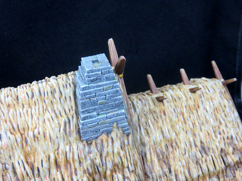 On ne se refait pas.Merci pour ton retour ! Allez cette fois le marathon maison est enfin lancé. Cette fois-ci, on va aller au bout ! LA MAISON DE L’ÎLE PERDUE Je commence avec quelques images du cadre. Je me suis bien sûr basé sur celui que j’ai réalisé pour le foyer, avec quelques difficultés liées à la taille du diorama. Notamment parce que ma machine, bien que grande, ne permet pas d’imprimer les côtés longs (28 cm) en un seul morceau.  Voici une petite mise en scène, avec quelques figurines pour animer l’espace.      Ça rend trop bien, je suis content, et même hyper excité à l’idée d’avancer ! Pour démarrer la mise en peinture, j’ai choisi de réaliser les zones de pierres. Il y a beaucoup de brossages sur ces parties alors je préfère les réaliser en premier, lorsque je peux me permettre de dépasser un peu sur les zones voisines.  J’en ai profité pour sous-coucher à la bombe blanche le toit en chaume.  Avec tout ce blanc, il est difficile de capter les détails en photographiant. On verra mieux quand j’aurai peint le reste. Les seules parties peintes, que je vous invite à observer, sont les murs de pierre et la cheminée.