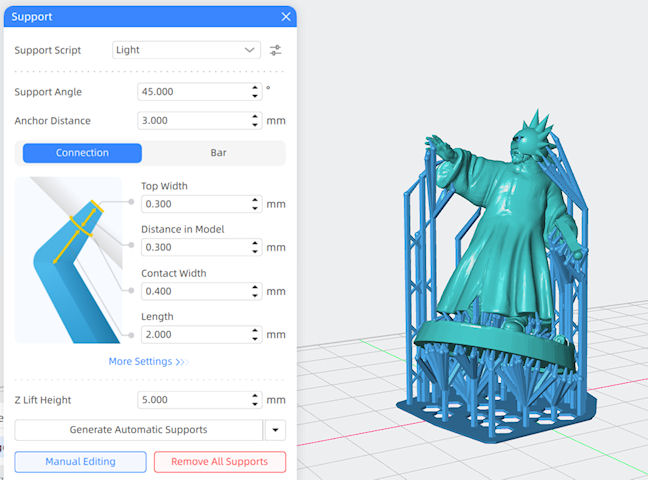 Oui, j’utilise un logiciel pour placer les petits supports, indispensables pour ce type d’impression. Ça donne ça sur un écran.