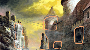 En extérieur, je pensais au château de Manthor, éventuellement. En intérieur ?Comme ca, premières idéés qui me viennent, la salle ou les bienveillants entassent leur trésor, mais lorsqu’elle est vide…ou les menhirs dans au dela des ombres, mais c’est pas en intérieur…
