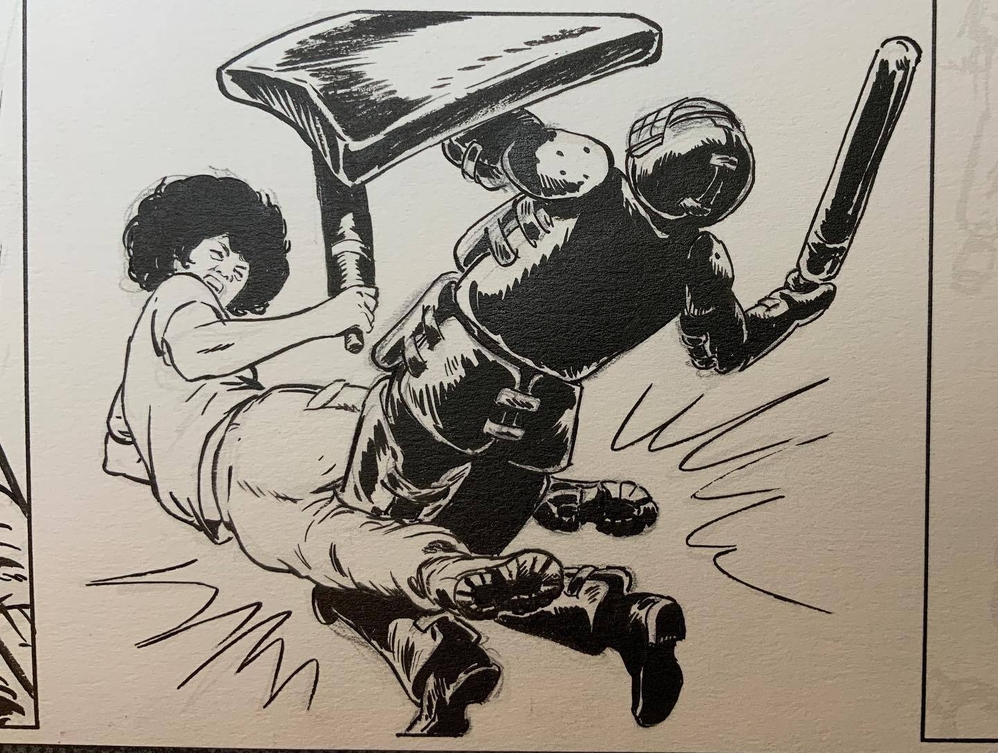 Dans « Le Réveil du tigre », tous les crayonnés ont donc été fait numériquement et tout l’encrage a été fait à la main, avec les outils classiques : plumes et pinceaux. Mais rassurez-vous : si demain, on entre dans une ère où l’électricité n’existe plus, je me remettrai sans problème à faire à nouveau mes crayonnés sur papier !