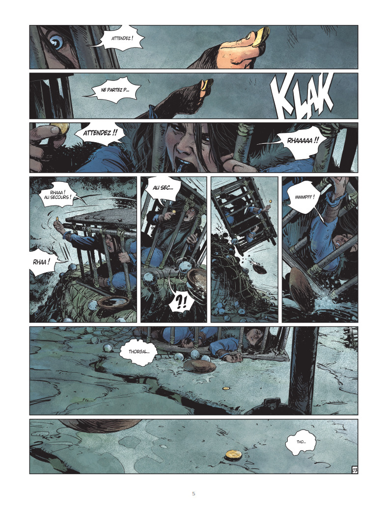 Là -bas, les vents hurlants portent un avertissement ancien, et les habitants semblent vivre sous la menace d’une présence aussi mystérieuse que redoutée. Très vite, père et fils comprennent que l’enlèvement de Louve n’est pas un acte isolé, mais qu’il s’inscrit dans une malédiction plus vaste, liée à la légendaire Kopakonan, la Selkie, créature mi-femme mi-phoque dont le pouvoir s’étend sur toute l’île. Confrontés à des coutumes hostiles et à une population dominée par la peur, Thorgal et Jolan doivent démêler les fils d’un mythe ancestral pour espérer sauver Louve.