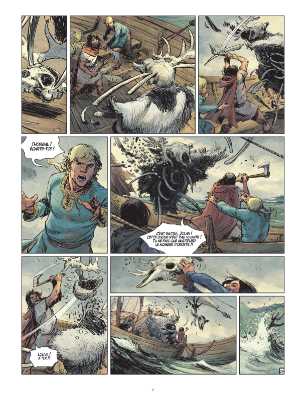 Déterminé à comprendre l’origine de cette malédiction, Thorgal enquête avec Jolan et découvre que cette emprise n’est pas le fruit du hasard. Une force extérieure manipule les esprits et menace de réduire tout le village à l’esclavage.