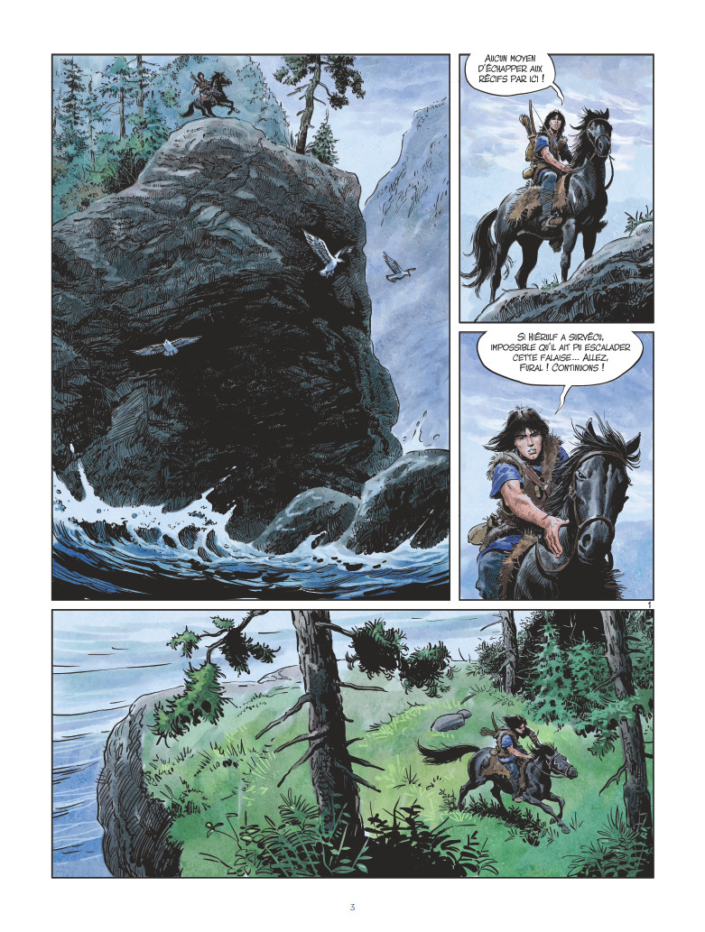 Chevauchant le long de la côte, Thorgal cherche son ami Hiérulf, emporté par la mer. Il n’est pas le seul à chercher le vieil homme. Car, dans le village viking, on sait que Hiérulf connaît un secret qui pourrait provoquer la chute du clan des Vikings du nord.