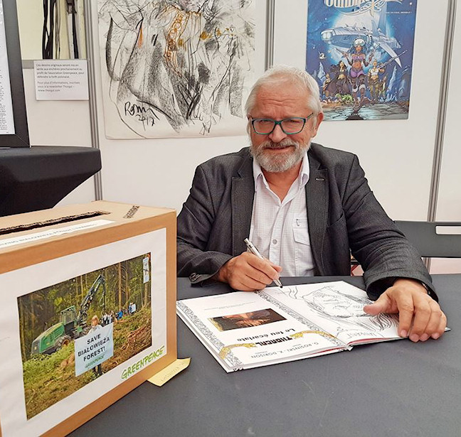 Le magazine TV  « Entrecase  » a réalisé un reportage chez Christie’s, pendant la vente aux enchères qui a notamment concerné une trentaine d’œuvres de Rosinski. Diffusé il y a quelques jours sur Ouatch TV, l’entretien mené par Emmanuelle Klein s’adresse d’abord à Daniel Maghen, l’organisateur de la vente aux enchères. C’est ensuite Grzegorz Rosinski qui est interrogé sur la relation qu’il entretient avec ses personnages et ses anciennes planches, ainsi que son intérêt pour le processus de création de l’image.   Un entretien a également été réalisé pour BFMTV. Rosinski y donne son avis sur l’entrée de la BD sur le marché de l’art. Il évoque également ses rapports avec les planches en noir et blanc mises en vente, et revient sur la période où il a fait le choix de la couleur directe pour Thorgal. L’auteur a également participé à l’émission « Tout et son contraire » de Philippe Vandel sur France Info. Les questions rebondissent sur toutes sortes de sujets, personnels ou artistiques. Rosinski évoque la période où il réalisait ses planches en Pologne, son installation en Suisse à la fin des années 80, la prononciation de son prénom, les origines et le vieillissement de Thorgal, son ressenti lorsqu’il dessine, son rapport à la célébrité, son éventuelle succession… On y apprend notamment que les planches mises aux enchères ont été choisies librement par Daniel Maghen parmi celles qui appartiennent toujours au dessinateur.
