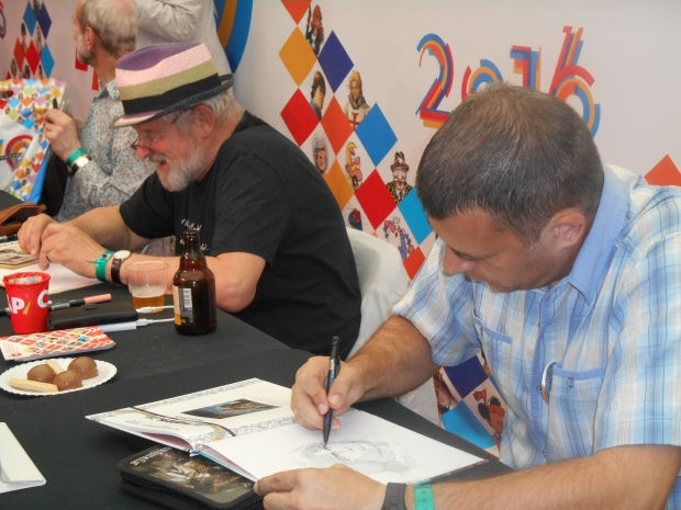 Cette année, Le Lombard fête ses 70 ans ! L’éditeur donne rendez-vous aux lecteurs à la fête de la BD, à Bruxelles, du 2 au 4 septembre 2016. À cette occasion, Le Lombard sabre le champagne et fait pétiller ses bulles ! Plus de 50 auteurs en dédicaces, des expositions, des conférences animées, des impros en pagaille, des oiseaux en colère, des coups de crayon et des centaines de cadeaux à gagner. 70 ans de héros et d’histoires ; une occasion de passer le week-end avec Thorgal, Bob Morane, Ducobu, les Schtroumpfs et Yakari, mais aussi de revivre les aventures du journal Tintin et de partir sur les traces de Ric Hochet, Clifton, Jonathan et tant d’autres. Entre les souvenirs de rédaction et le lance-pierre Angry Birds, il y en aura pour tous les goûts ! Les visiteurs pourront se faire photographier avec le Grand Schtroumpf ou Yakari, mais aussi devant un superbe panneau thorgalien, au cœur du conflit, près du héros. Le programme complet est présenté sur le site du Lombard, avec entre autres la liste des auteurs présents sur le stand. Parmi eux, deux dessinateurs nous intéressent particulièrement : Grzegorz Rosinski et Roman Surzhenko. L’auteur polonais proposera à ses lecteurs de participer à une œuvre caritative. Une nouvelle façon de partager autour de la dédicace. Quant au dessinateur russe, il pourra aussi être trouvé sur le stand de Ballon Media, qui diffuse Thorgal en néerlandais.
