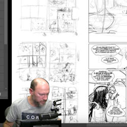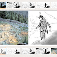 Il y a quelques mois, le dessinateur de Thorgal, Fred Vignaux, a participé à une « Masterclass » en ligne, en direct. Il y dévoile son parcours et ses méthodes de travail, avant de dispenser un passionnant cours de mise en image. Il a tellement apprécié qu’il a même fallu un second épisode pour faire le tour de ce qu’il souhaitait présenter. Nous vous en reparlerons, bien sûr. Fred est avec Franck Payen, expert dans l’utilisation des outils présentés et excellent connaisseur des arts graphiques. Thorgal.com vous propose de voir ou revoir cet entretien, de diverses façons, comme vous le souhaiterez. Vous pouvez aller sur la chaîne Youtube qui a diffusé la session, afin de voir la vidéo et le chat qui s’est déroulé en direct. Dans ce cas, il faut cliquer ICI. Mais si vous préférez rester sur Thorgal.com, il y a du bonus ! Vous pouvez regarder en entier, ou vous laisser piloter par le guide de lecture ci-dessous, sous la vidéo, qui peut éventuellement vous mener à différents moments stratégiques. Vous pouvez vous en servir comme d’un marque-page virtuel, car tout est intéressant, ou pointer ce qui vous passionne le plus. Vous pouvez également vous rendre sur le forum Thorgal.com, où la Masterclass est présentée, pour commenter ou même poser vos questions. C’est par là, cliquez ICI. Tout est là, c’est pour vous, bonne séance. Mais chuuuuut… Fred et Franck s’installent… 2 min : présentation des Mondes de Thorgal 3 min : Facebook Vignaux 4 min : site Thorgal.com 5 min : iamag.co 9 min : albums Facebook Vignaux 10 min : parcours, études 12 min : cours du soir 13 min 30 : premier projet « L’ombre des anciens » 16 min : dépôt de bilan, BD non distribuée 17 min 30 : nouveaux projets, BD institutionnelles 18 min : « Time twins » au Lombard 19 min : « L’appel des légendes » chez Glénat 21 min : « Le pendule de Foucault » avec Didier Convard 21 min 30 : « Vercingétorix » (Ils ont fait l’histoire) 22 min 30 : « Neige » 23 min 30 : couvertures de la sagesse des mythes 25 min : Dorison repère Vignaux 27 min : Kriss et Thorgal 28 min : différents auteurs 29 min 30 : Rosinski arrête Thorgal 32 min : Vignaux auteur de Thorgal 33 min : tome 38 de Thorgal 34 min : couverture tome 37 34 min 30 : imprimerie tome 37 36 min : dédicaces 37 min 30 : brosses Photoshop 40 min : faire une BD, travailler avec Yann 41 min : choix des scènes alternatives 42 min : script de Yann 43 min : décryptage du scénario, page 1 44 min : rassembler la documentation 45 min 30 : esquisses de personnages pour la bible graphique 49 min : étude de décors de Neige 54 min 30 : story-board Neige, avec modèles 3D 58 min 30 : format des images 59 min 30 : croquis Kriss de Valnor 1h 01 min 40 : Esquisses « L’ermite de Skellingar » 1h 03 min 00 : Découpage de l’album, timbre-poste 1h 05 min 00 : Comment disposer des cases ? Exemple avec une planche de Neige + cheminement de l’oeil et variation des plans 1h 12 min 30 : étude d’une double-page (cheminement, noeuds graphiques, strips, gestion du temps) 1h 20 min 30 : Sens de la narration 1h 21 min 50 : l’art invisible 1h 22 min 30 : nouvelle planche de Neige 1h 24 min 10 : étude d’une planche de Thorgal 37 1h 26 min 40 : étude d’une autre planche de Thorgal 37 1h 29 min 10 : placer les bulles 1h 35 min 20 : observation du story-board, planche 1 1h 37 min 10 : création du story-board 1h 43 min 00 : personnages sur le story-board 1h 46 min 00 : dessin affiné sur le story-board 1h 48 min 00 : positionner le texte à partir du script, créer les bulles 1h 54 min 00 : conclusion et rendez-vous pour une seconde session