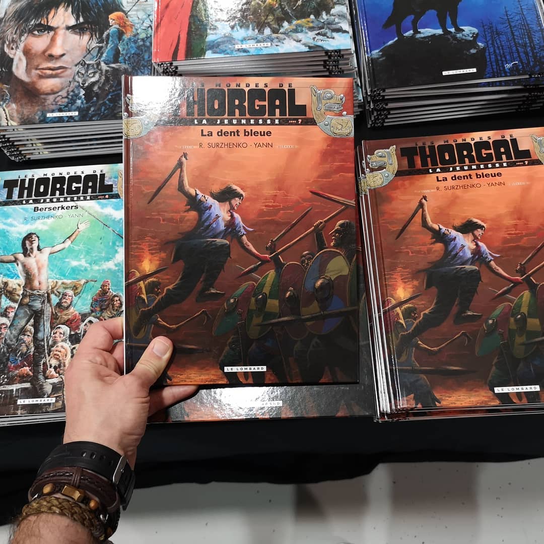 « La dent bleue » est le septième tome de la série La jeunesse de Thorgal. Il arrive bientôt, le 5 avril 2019. Dans le tome précédent, Thorgal avait cru à la mort d’Aaricia, disparue en mer, mais des alliés inattendus l’ont convaincu que la jeune fille est en vie, à bord d’un navire faisant voile vers le pays des Danes. Thorgal a repris espoir, mais il doit maintenant convaincre les Vikings du nord qu’une nouvelle expédition de sauvetage doit être menée ! En avant-première exclusive, vous trouverez les deux premières planches de l’album sur Thorgal.com, en suivant ce lien. Voici le résumé proposé par l’éditeur Le Lombard. Recueillie par un navire arabe, Aaricia n’a d’autre choix que de se rendre au Pays des Danes… où l’équipage espère rencontrer le terrible Harald à la dent bleue. Gandalf décide alors d’envoyer ses hommes accompagnés de Thorgal à la recherche de sa fille. Le voyage ne sera pas de tout repos. Entre trahisons, naufrage et capture, Thorgal devra à nouveau user de sa force et de son esprit pour retrouver sa bien-aimée. Si vous souhaitez commander l’album sur Internet, un ex-libris exclusif sera offert sur la boutique en ligne BD Fugue. On vous en reparle bientôt. Enfin, guettez les actus, parce que de nouvelles planches seront dévoilées dans quelques jours. Le lien vous sera proposé dans la lettre d’infos Thorgal début mars. Pour vous abonner à cette lettre mensuelle, le lien « Newsletter » est dans le bandeau en haut de la page.