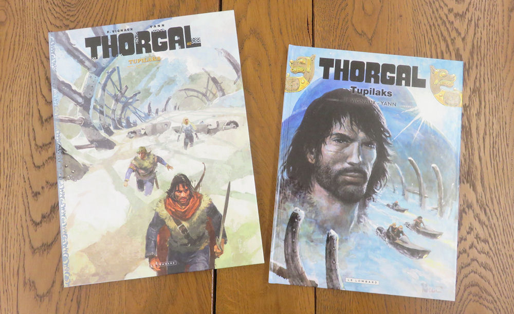 Le nouvel album de Thorgal, « Tupilaks », arrive le 10 novembre ! L’offre sera multiple pour ce 40ème tome, avec bien sûr l’édition classique du Lombard, disponible partout, mais aussi avec deux autres versions éditées en nombre limité. Vous pourrez ainsi acquérir une édition spéciale dans les magasins Cultura, avec une superbe couverture inédite réalisée par Fred Vignaux. Reprenant un format vu pour certains albums précédents de la série — voir ICI pour une présentation de ces éditions spéciales — cette édition en grand format 24 par 32 sera augmentée d’un cahier graphique de 7 pages. Elle est limitée à 1650 exemplaires (20€50, magasins Cultura, au Lombard). Les collectionneurs auront également la possibilité d’acquérir une belle édition de luxe en très grand format 30 par 37, avec une finition très soignée qui vous sera présentée sur Thorgal.com. Elle paraîtra légèrement plus tard, le 18 novembre 2022. En voici la couverture non finalisée. Comme souvent pour ces belles éditions, le cahier graphique sera conséquent, avec un album qui atteindra les 72 pages. En plus des planches reproduites en noir et blanc, on y trouvera un cahier graphique, des pages de story-board, des recherches de personnages ou de lieux et beaucoup de jolies surprises extraites des archives des auteurs. 300 exemplaires de cette édition ultime seront proposés dans le commerce (139 euros au Lombard).