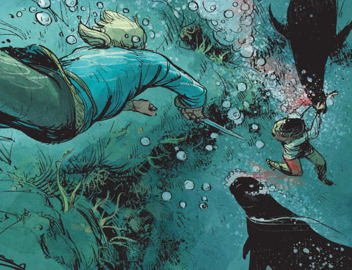 En fait, l’album entier est empreint de dramaturgie burlesque. On tue en riant, on meurt par maladresse, hasard, bêtise ou lâcheté, pour le plaisir du roi, sous le regard de ses pairs. Au sein de l’immense armada viking, Wargan est ainsi le premier adversaire à mourir, brûlé vif alors qu’il tente de sauver la troupe. Comme si un type là-haut dans la montagne avait pris soin de viser le petit grand-père qui s’agitait sur un des bateaux, en criant « preums ! » à ses voisins d’artillerie.