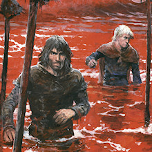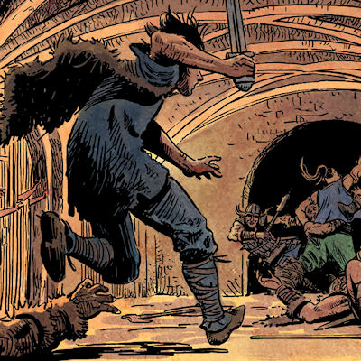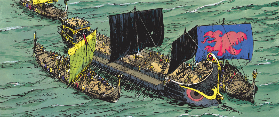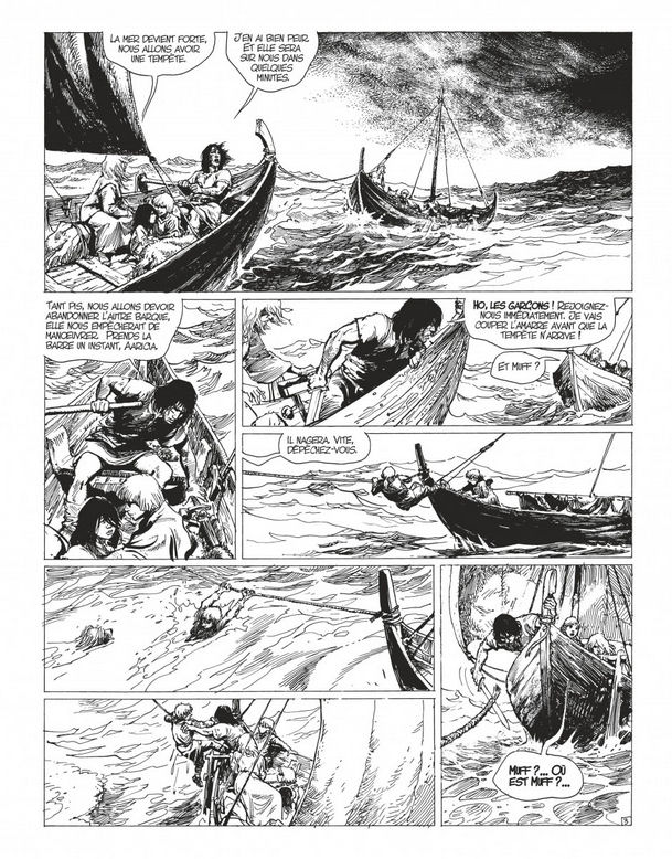 La lecture défile et nous voici déjà à l’ouverture du troisième tome de la série, le fabuleux « Les trois vieillards du pays d’Aran ». L’image choisie a marqué une génération de lecteurs et fortement participé à forger la légende de Thorgal.
