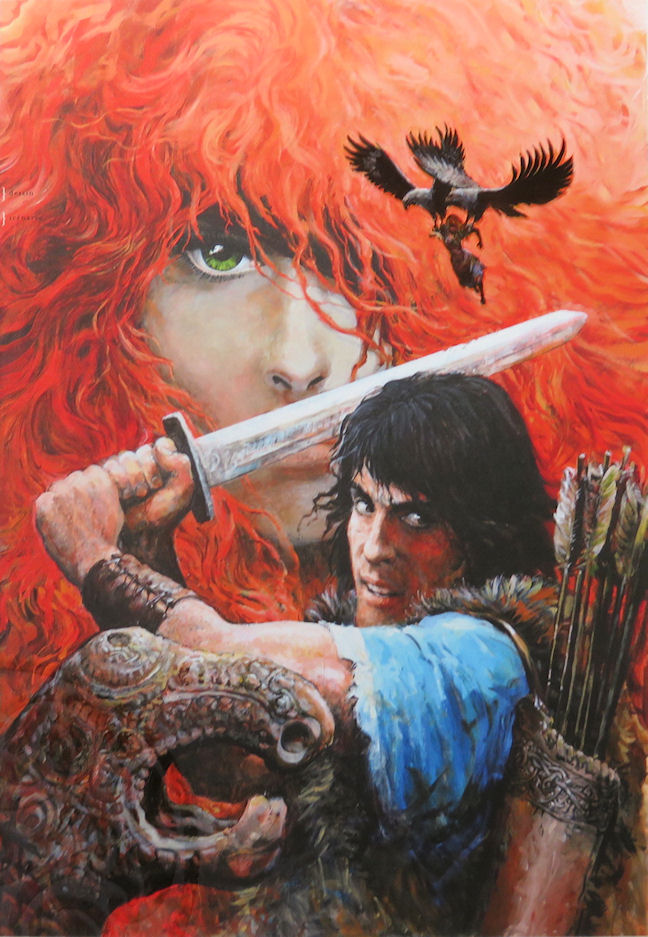 La toile de couverture est magnifique, et inédite en France. Il s’agit d’une réinterprétation de la couverture de « La magicienne trahie », avec une petite touche de « L’île des mers gelées ». Thorgal y est beau et combattif, cerné par la chevelure flamboyante de Slive.