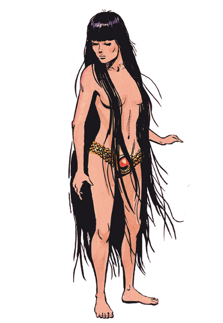 La Gardienne l’accueille en un lieu surnaturel hors du monde. Belle jeune femme nue aux longs cheveux noirs, ses premiers propos sont frivoles, moqueurs. Mais elle se révèle rapidement être une puissante magicienne.