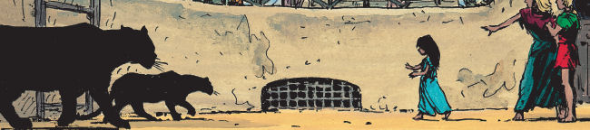 Faits prisonniers peu après par des marchands d’esclaves, Louve et sa famille se retrouvent au service du gouverneur du Ponant, une province faisant partie de l’empire. Louve doit faire la démonstration, devant la cour, de sa capacité à se faire comprendre des animaux. Amenée dans une arène, elle parvient à amadouer deux fauves et à convaincre le gouverneur de la garder auprès de lui. Quelques temps après, alors que Thorgal doit participer à un tournoi d’archers pour le compte du gouverneur, Louve apprend la mort de Tiago. Jolan, Aaricia et elle sont offerts au prince héritier de l’empire. Ils quittent le Ponant, laissant Thorgal derrière eux.