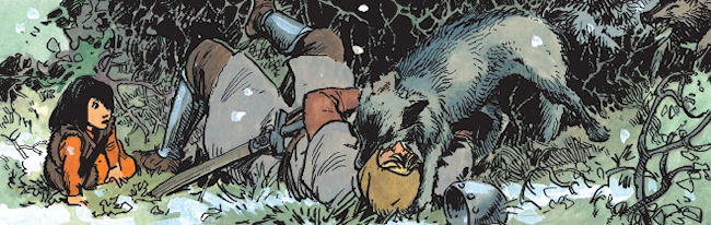 Privés de tout, en plein hiver, Louve et sa famille parviennent à rejoindre le grand fjord du sud, notamment grâce à la protection des loups qui continuent à être fidèles à la petite fille. Ils la sauvent quand la famille en fuite est prise en chasse par des esclavagistes.
