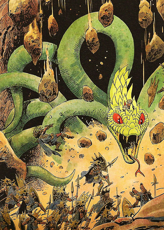 Le serpent Nidhogg est un être immortel aux multiples queues. Doté de grands pouvoirs, il cherche toujours à en obtenir davantage.